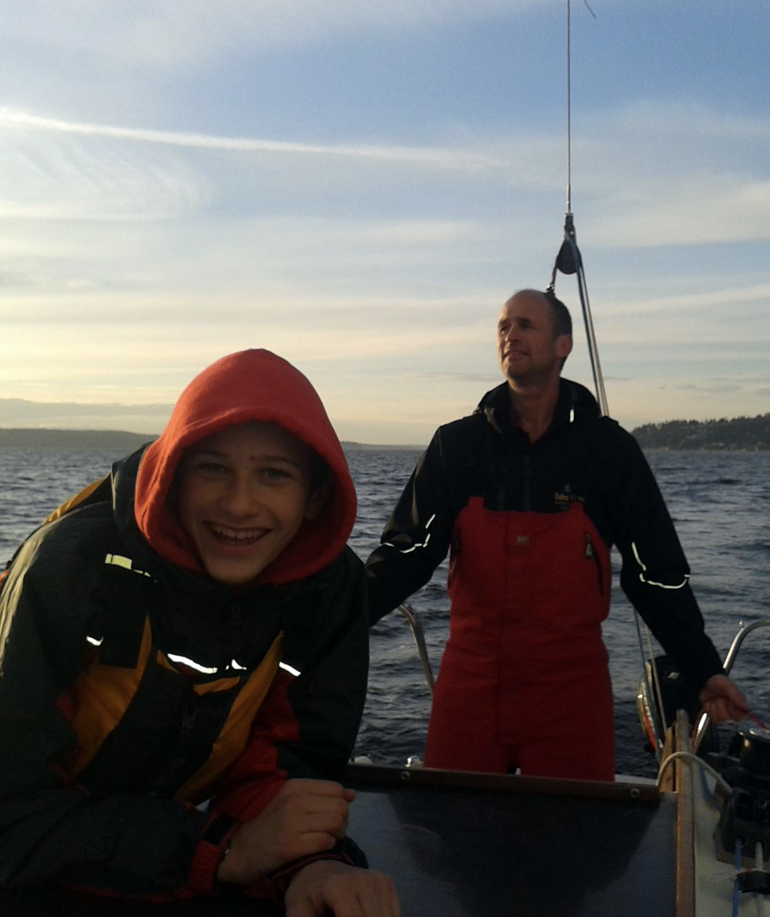 I met Brad in 2001 while working for West Coast Yachts. In October of 2002, I was fired and Brad left WCY a few weeks later. We opened Swiftsure Yachts with a third partner, Scott Fuller, and worked as a team to provide seamless service to our boat buying and selling clients. This eventually allowed us to take time away from work to race and cruise, and we spent as much time on the water as possible. One weekend we piled our families and Opti’s aboard Scott’s Frers 64 Volcano and sailed to Port Madison on Bainbridge Island for the night.